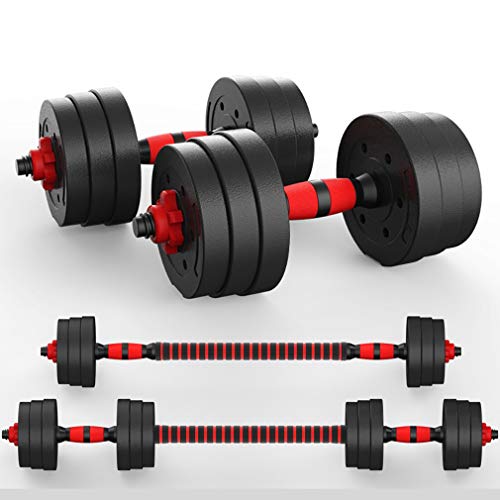 Verstelbare dumbbells set wordt geleverd met een aansluitende bar die gemakkelijk kan worden bevestigd aan beide dumbbells om te zetten in een barbell.Er zijn ook instelbaar gewicht platen waarmee u het gewicht van de halter / barbell aan te passen aan uw wensen.