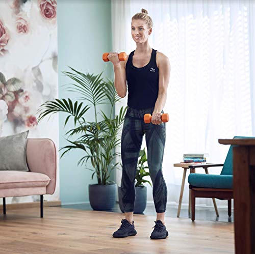 Voorkom rollen, schade, lawaai en impact bij een val met onze dumbbell set van 2 kg. De dumbbells zijn gemaakt van neopreen waardoor vallen en stoten worden gedempt. Deze dumbbells hebben een comfortabele grip waarmee je verschillende oefeningen kunt doen. Gebruik de dumbbels tijdens jouw krachttrainingen thuis, ze zijn perfect voor het trainen van individuele spiergroepen maar zeker ook voor de grote spiergroepen! De dumbbells zijn ideaal om de GXR lessen vanuit huis mee te doen. Dit product bevat: 1 x Basic Fit – Dumbbell Set – Dumbbells, Rubber – Oranje – 2 x 2 kg